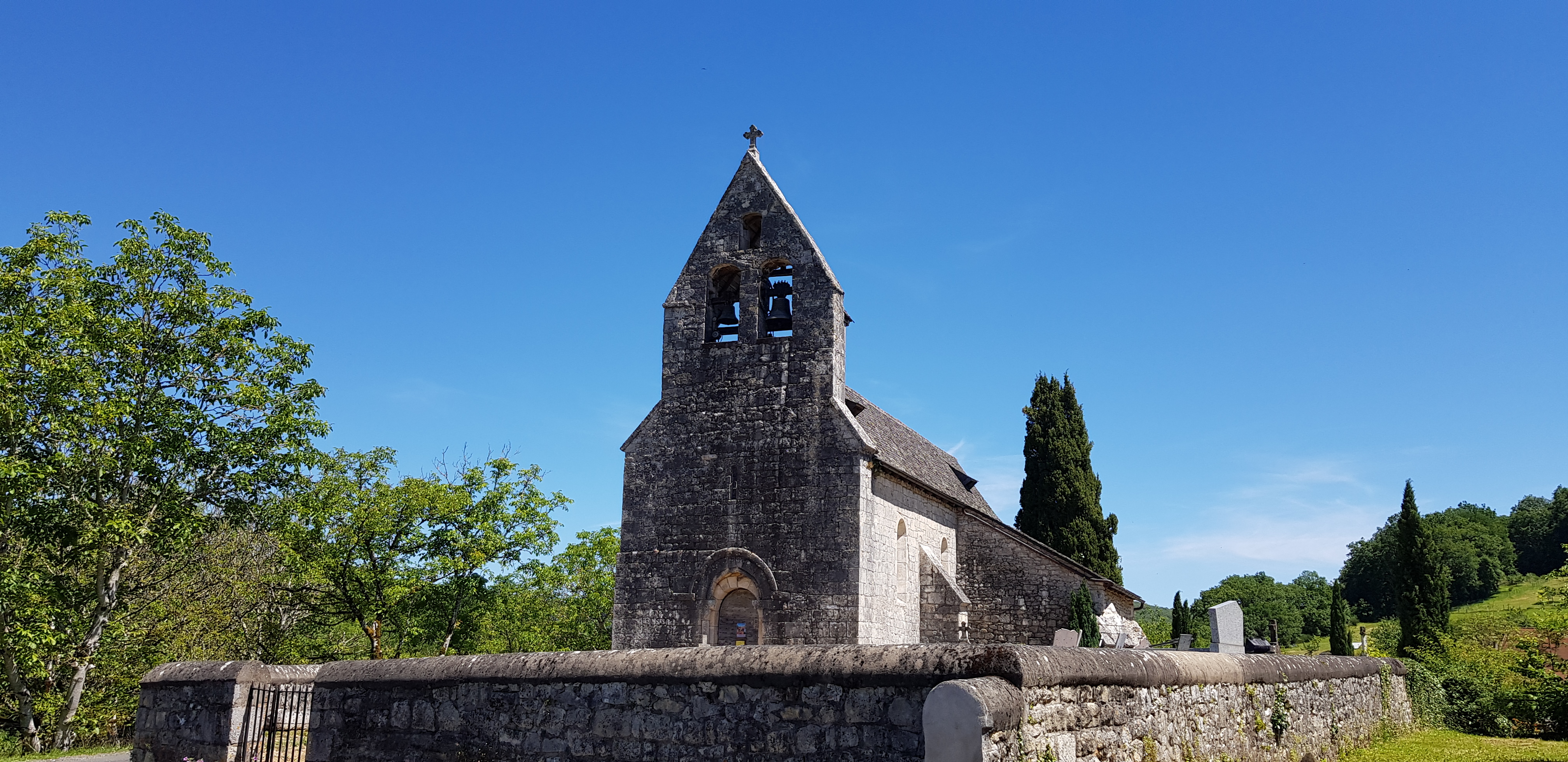 Très jolie église dédiée à Saint-Georges est à voir absolument, classée aux monuments historiques dés 1908, date fin XIIe siècle, début XIIIe siècle, dans un style de transition entre le roman et le gothique. Si vous passez le long de l’église, vous pourrez voir une niche sur un des contreforts extérieurs. Certains auteurs ont pu voir une lanterne des morts, d’autres un abri pour une statue de piété. Deux cloches logées dans deux oves (trou en forme d’œuf) percées au sommet du clocher-pignon : l’une datant de 1711, cadeau d’un des seigneurs de Belcastel et Latreyne pour son mariage, l’autre en 1887 par une souscription des paroissiens.