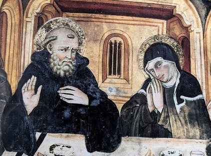 Saint Benoît et sainte Scholastique (détail) – Fresque, par l’école ombrienne, XIVe s., église supérieure du monastère Sacro Speco à Subiaco, Italie